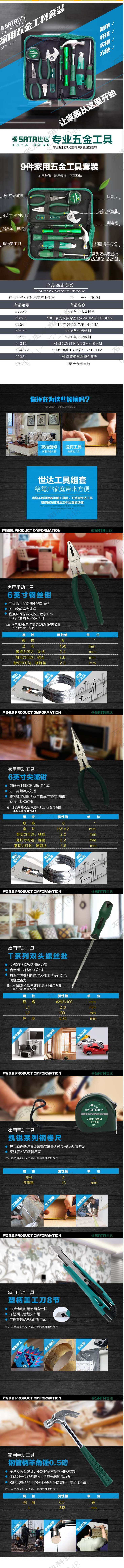 • 商品名稱:世達(dá)(SATA)06004 家用維修五金工具基本組套電工綜合組套9件套裝