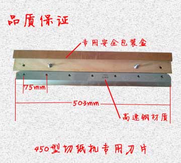 刀片總長503mm,厚度為6mm,刀片上7個孔位,孔徑5MM,孔距75mm。