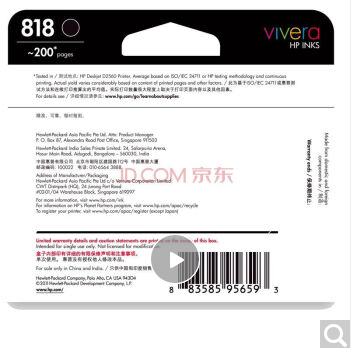 • 商品名稱:惠普原裝818號墨盒黑色彩色 hp打印機墨水盒耗材 D1668 D2568 D2668 CC640ZZ 黑色(200頁)